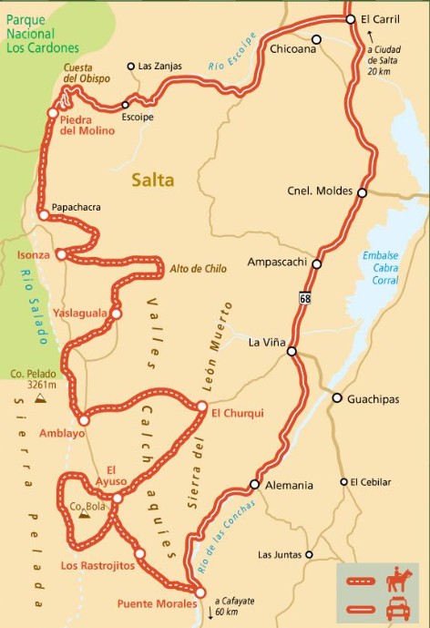 We leave Ayuso riding through narrow creeks well South into the Calchaquí Valleys towards our next stop at Rastrojitos (1900 meters high). We have now moved into the Cafayate Creek which has rock formations that