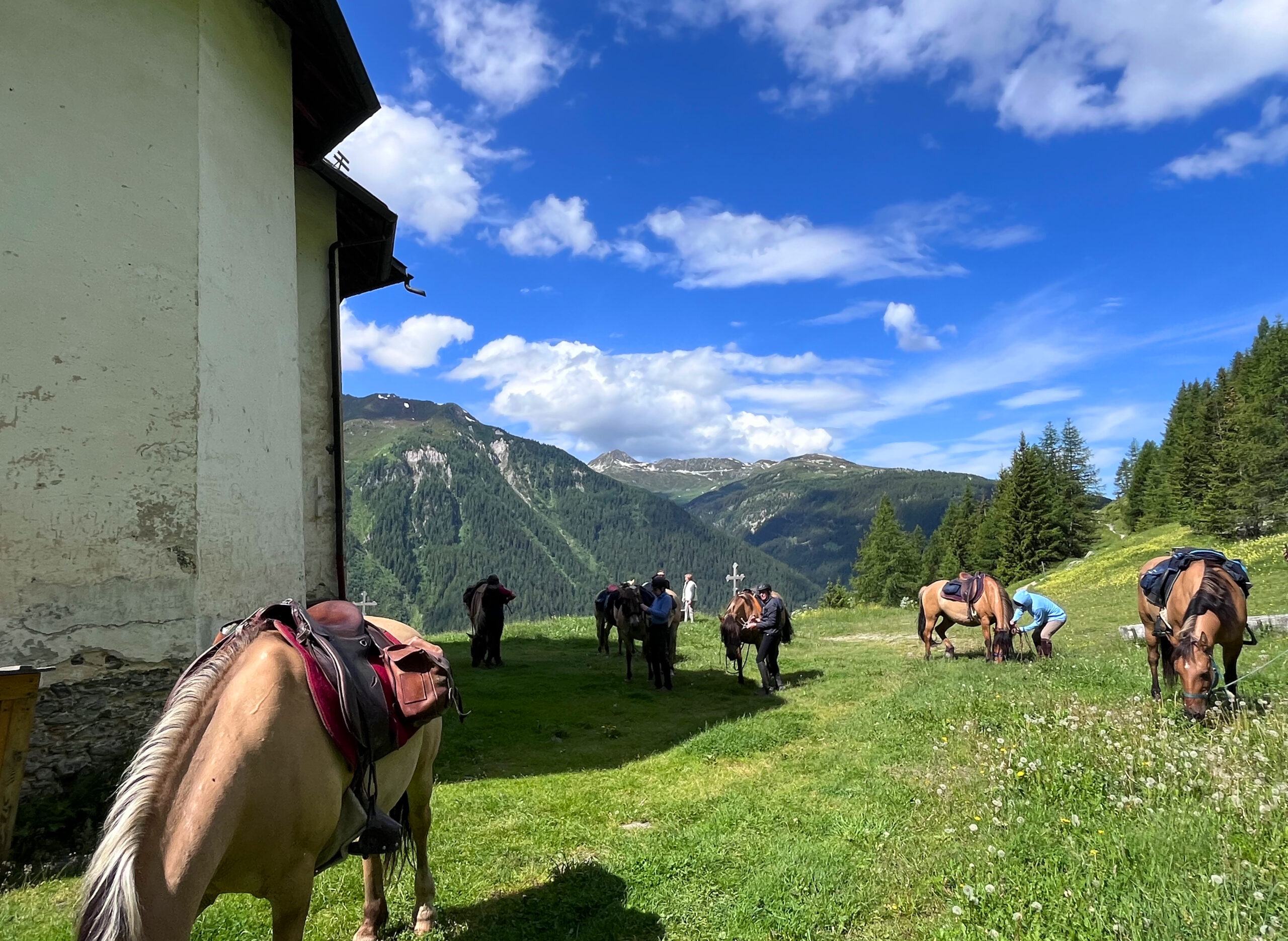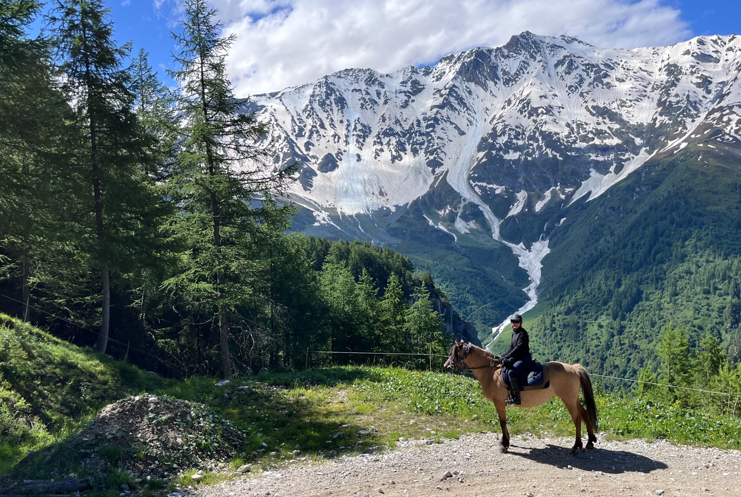 We again head out on our ride in the westerly direction and down into the Tarentaise Valley, which runs along the Isere River. As we get to the flat part of the valley we have many great places to trot and canter. We will cross the Seez and climb up toward Italy and the Mont Blanc range before stopping at an authentic mountain chalet where our charming local hosts will have lunch prepared for us and a large verdant meadow beckons our horses who will stay overnight.