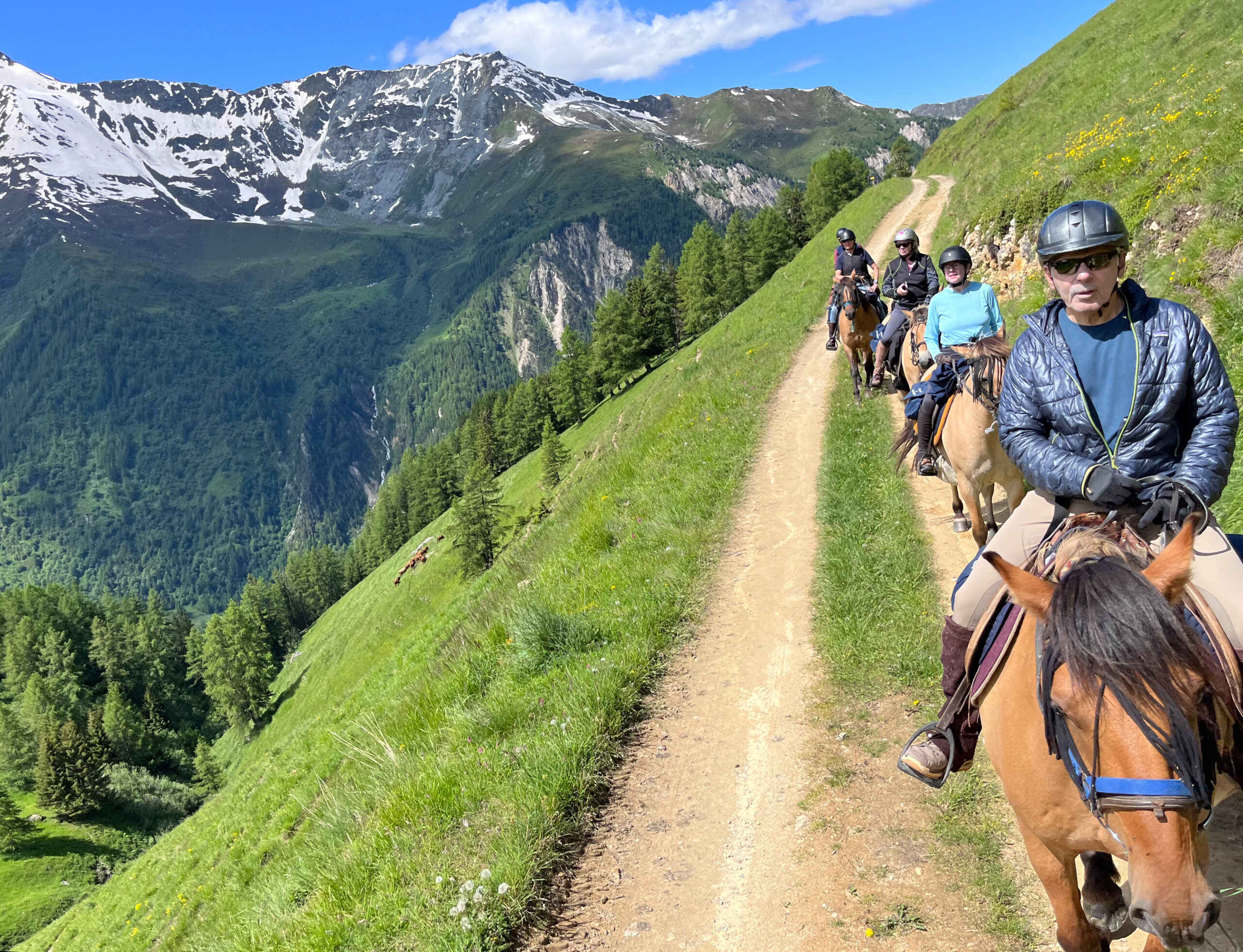 On our horses, we will experience that we are part of the vibrant living of the mountains, and observe how the rocks, ice, forests, plants, eagles, ibex, and marmots … here, form a nature of divine intensity. And our accommodations are in 3*** or 4**** hotels always located in the heart of the mountains and facing the Bellecote chain, Mont Pourri or Mont Blanc – every day the view from your room is utterly magnificent!