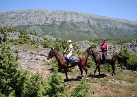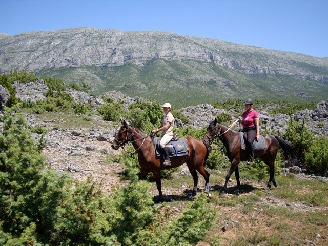After breakfast and tacking up, the ride begins by riding through Vrlika before you start climbing up the mountains through the village of Maovice.