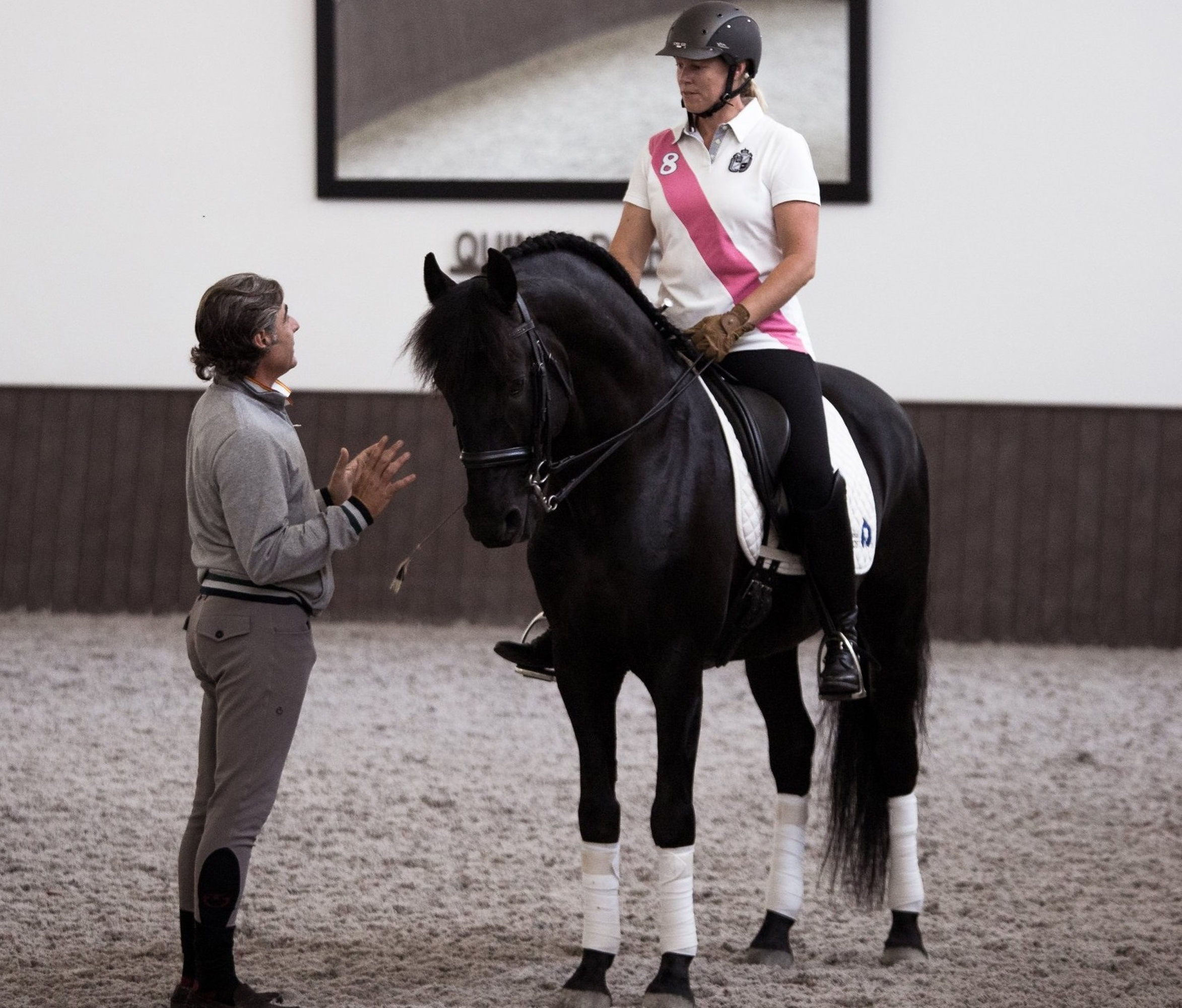 The horses are impeccably prepared for every session — flowing manes and tails carefully brushed, hooves dressed, and brushing boots fitted. Regular turnout in the paddocks ensures they remain fit, content, and well balanced.