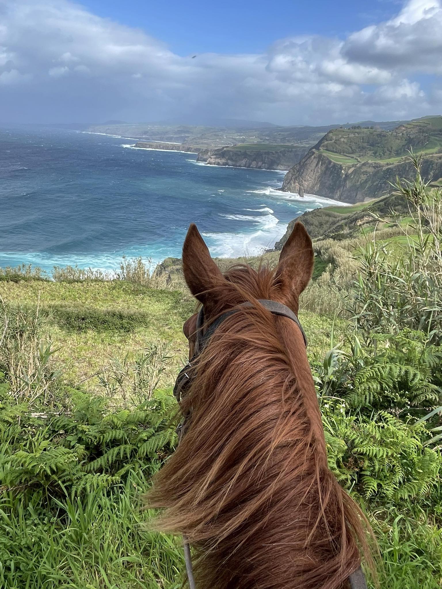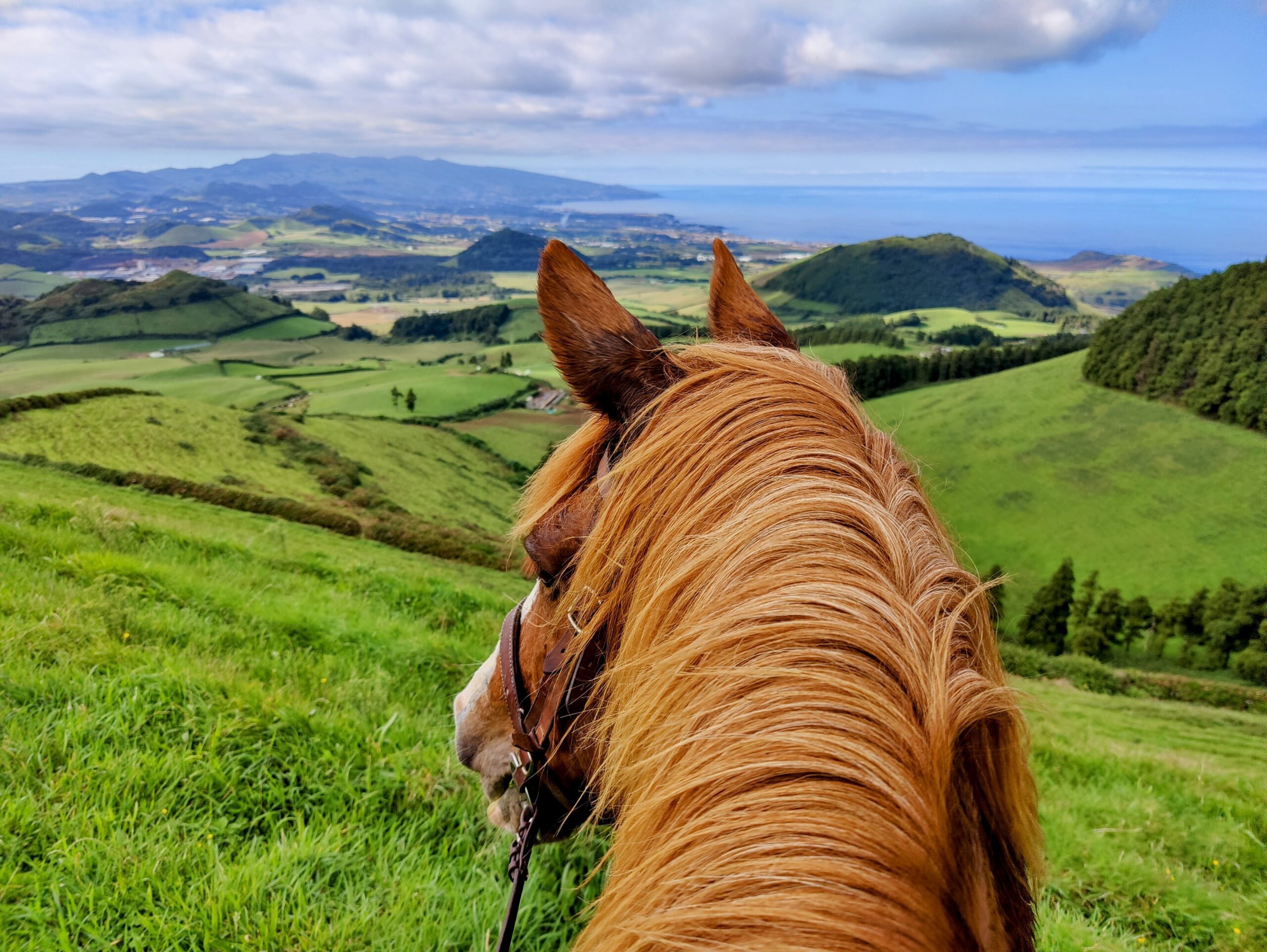 In the afternoon, you'll enjoy a ride that offers a bit of everything including fun canters. We start the ride close to the ocean, then up and over the hill Pico da Multa, continuing through the village of Gramas and we finish close to Ribeira Grande before returning back to the estate.