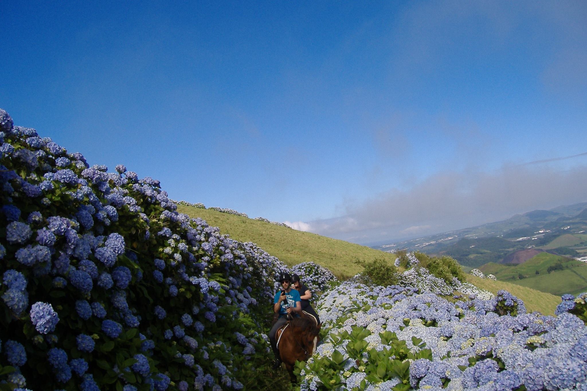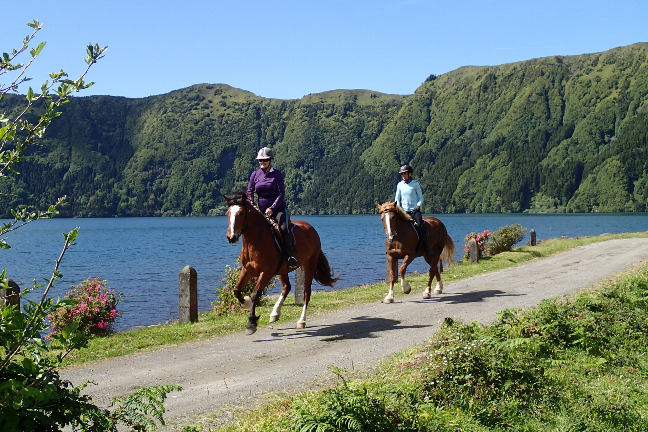 An unforgettable day, it is like riding in a fairytale landscape. After breakfast, you mount up and ride along the volcano crater rim overlooking the twin lakes on one side and the ocean on the other. The tranquility of the waters and the scent of the Hydrangeas, which border the crater rim, contrast with the steep sides of the crater, creating a truly unique and fascinating sight.