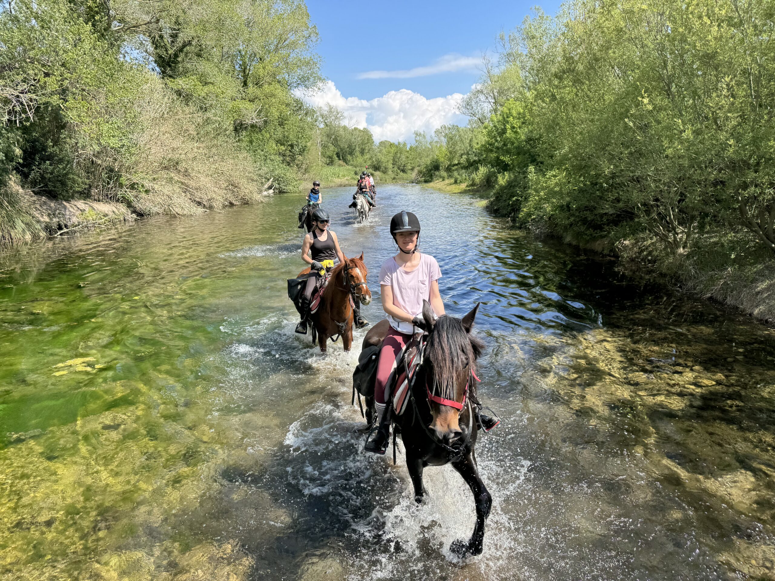 The shady forest paths of the Mediterranean pine forest are perfect for long gallops. At a brisk pace, we reach a pretty village at the foot of the Gavarra mountains.
