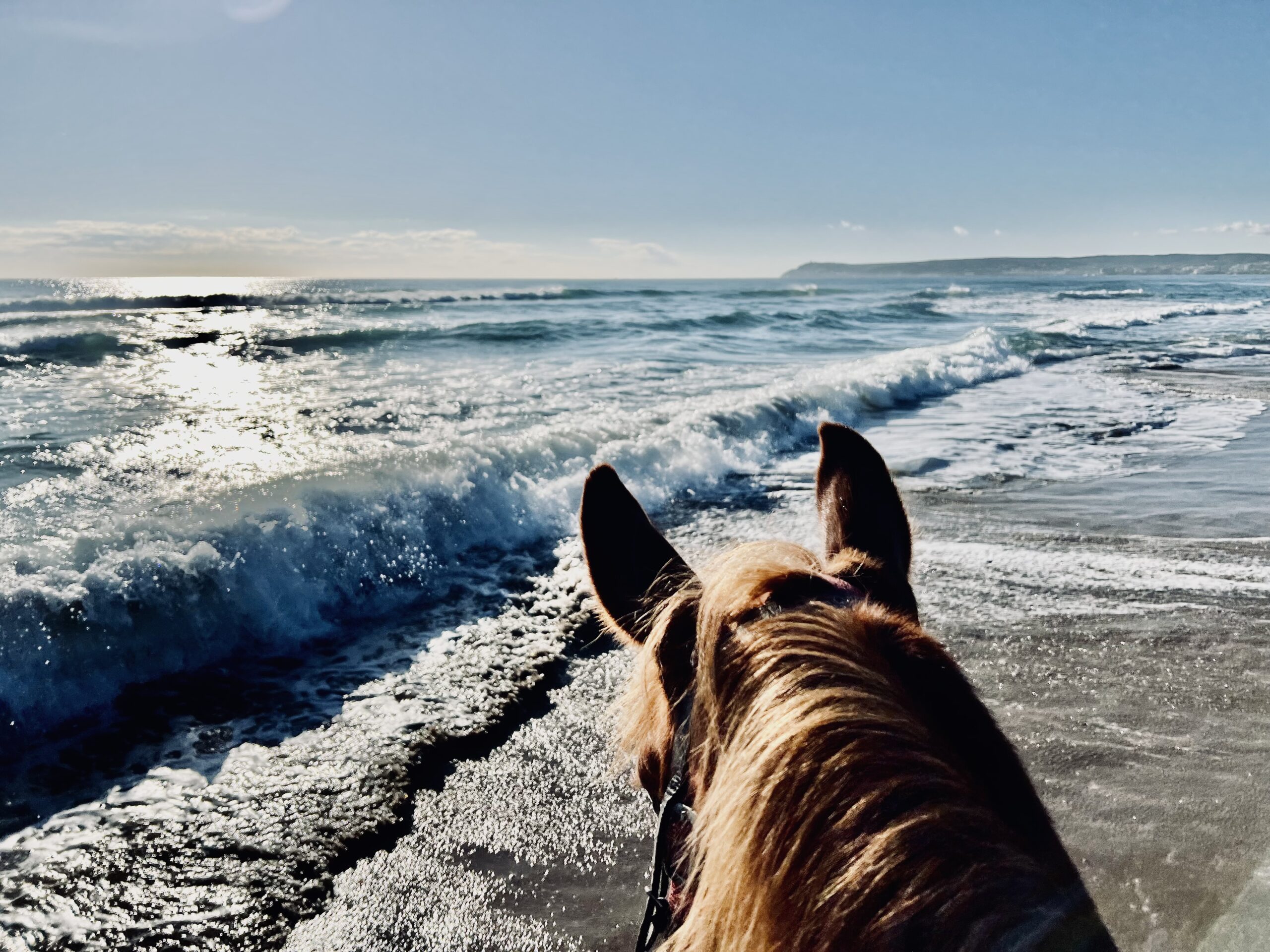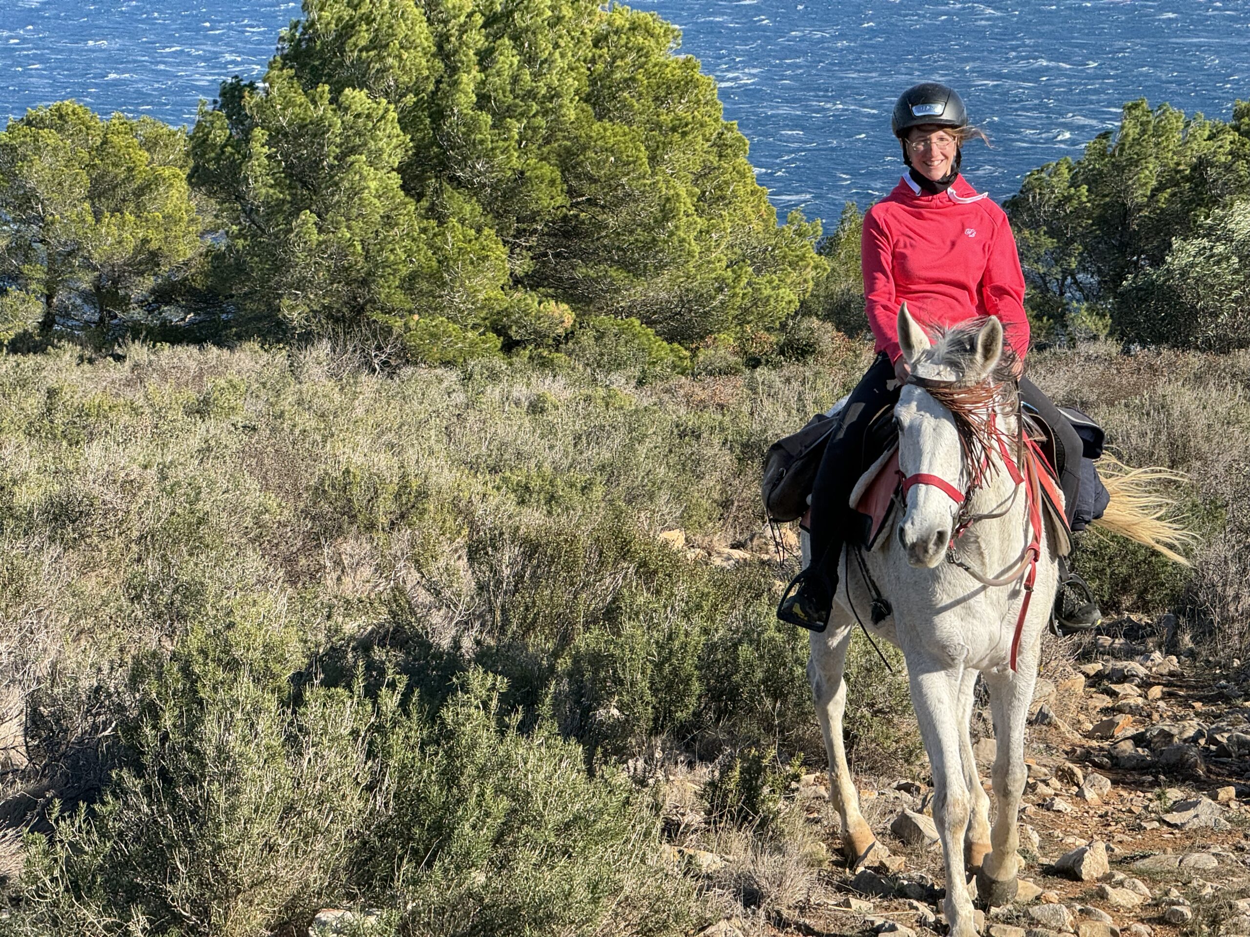 During a long canter, we cross the high plateau of the coastal mountain range and dive under the canopy of Mediterranean pines, pleasantly shaded, towards the sea. Kilometres of sandy beach lie before us. The water splashes, the sand flies, we ride off into the sunset. The horses play with the waves and we try to stay dry.