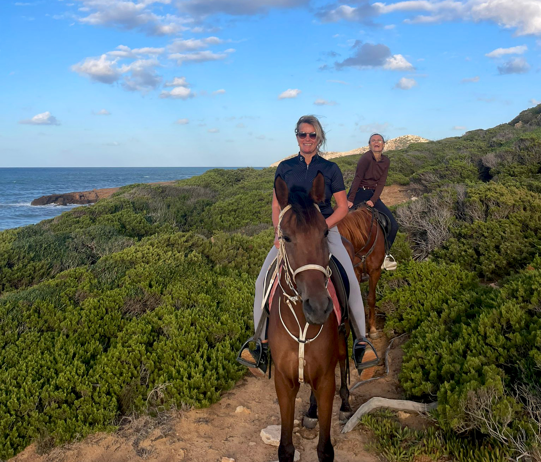 The first half day ride of the week takes us from the ranch onto soft forest trails with sandy ground, offering beautiful views across the surrounding landscape. Riding steadily through the trees, we gradually head toward the sea until the beach of Ain Damous finally comes into view.